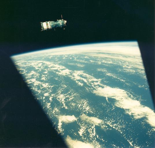 MAKE A MEME View Large Image This scene was photographed with a handheld 70mm camera from a rendezvous window of the American Apollo spacecraft in Earth orbit during the Apollo-Soyuz Test Project (ASTP) mission. It shows the Soviet Soyuz spacecraft contrasted against a ...