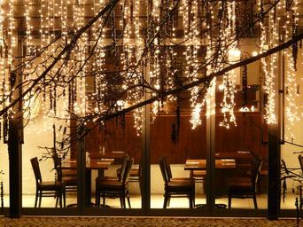 Keywords: space dining room breakfast breakfast table eat hotel inn lamps lamp lighting lichterkette light hell