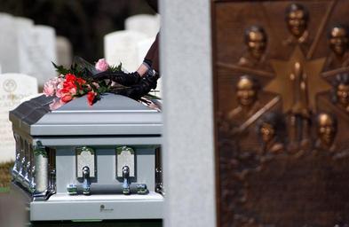 | Keywords: Space Shuttle Columbia funeral -f.jpg en 030310-N-6967M-006 Arlington Va Mar 10 2003 -- Flowers are placed on the casket of NASA Astronaut and Navy Captain Laurel Blair Salton Clark a member of the crew of the Space Shuttle Columbia Clark was laid to rest near the memorial which honors the Astronauts from the space shuttle Challenger in Arlington National Cemetery U S Navy photo by Photographer's Mate 1st Class Shane T McCoy RELEASED https //www news navy mil/view_photos asp page 459 sort_type 0 sort_row 1 Shane T McCoy 2003-03 PD-USGov-Military-Navy Space Shuttle Columbia disaster Photographs by Shane T McCoy Funerals of military people in the United States Laurel Clark |