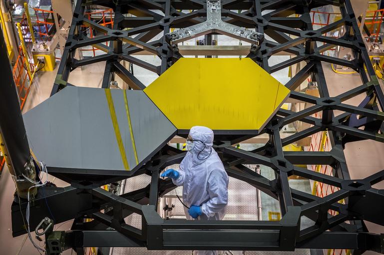 Keywords: space telescope mirror segments high tech test science support frame technician research technology james webb cosmos study