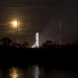 MAKE A MEME View Large Image spacecraft rocket launch pad night moon full maven mars cape canaveral florida mission space exploration