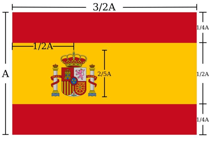 Keywords: Spain flag construction sheet.svg en Flag of Spain construction sheet es Hoja con las especificaciones oficiales para la construcción de la Bandera de España gl Folla coas especificacións oficiais para a construción do a Bandeira de España ca Full de les especificacions oficials per a la construcció de la bandera d'Espanya pt Folha de especificações oficiais para a construção do bandeira de Espanha own Darolu Flag of Spain Odder 2010-09-21 The Spanish Law of the Patriotic Symbols and National Anthem recognizes that the government only holds moral property of the national symbols but not property rights insignia 150px 150px Inkscape Flag construction sheets of Spain |