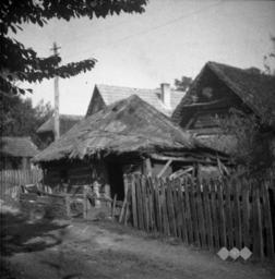 Keywords: Špajuščova lesena bajta, Groblje 32 1952.jpg Špajuščova lesena bajta Groblje 32 hisa/f0000009240 between 1952-08-15 1952-09-13 creator Fanči Šarf watermark PD-Slovenia 1952 in Slovenia Groblje pri Prekopi Historical images of wooden houses in Slovenia Picket fences in Slovenia Photographs by Fanči Šarf