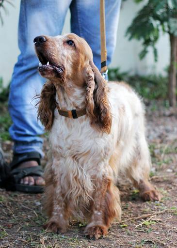 Keywords: spaniel dog pet canine dog leash white brown