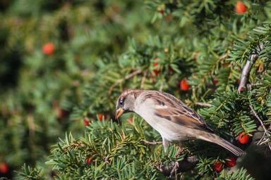 Keywords: sparrow bird feather animal wing beak brown tree