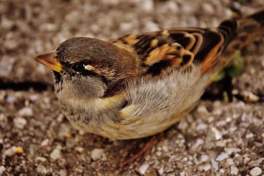 Keywords: sparrow bird small cute nature plumage young birds sparrows foraging wing close animal sperling