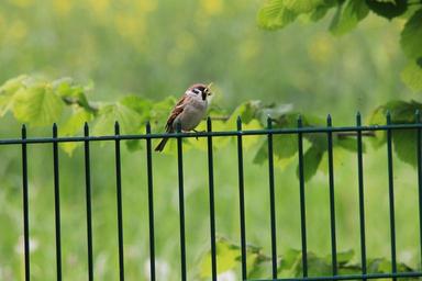 Keywords: sparrow green animal bird fence