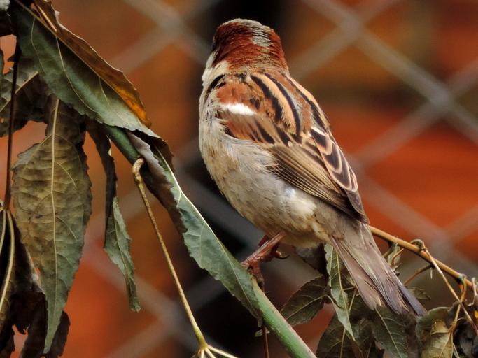 Keywords: sparrow leaves flying branch plant autumn eventide nature