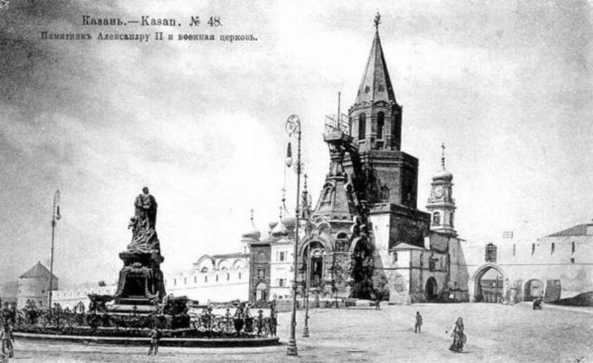 MAKE A MEME View Large Image Spasskaya tower and Alexander II monument in Kazan.jpg ru Памятник Александ у II и военная це ковь Спаса  е укотво ного Об аза п и Спасской башне казанского ...