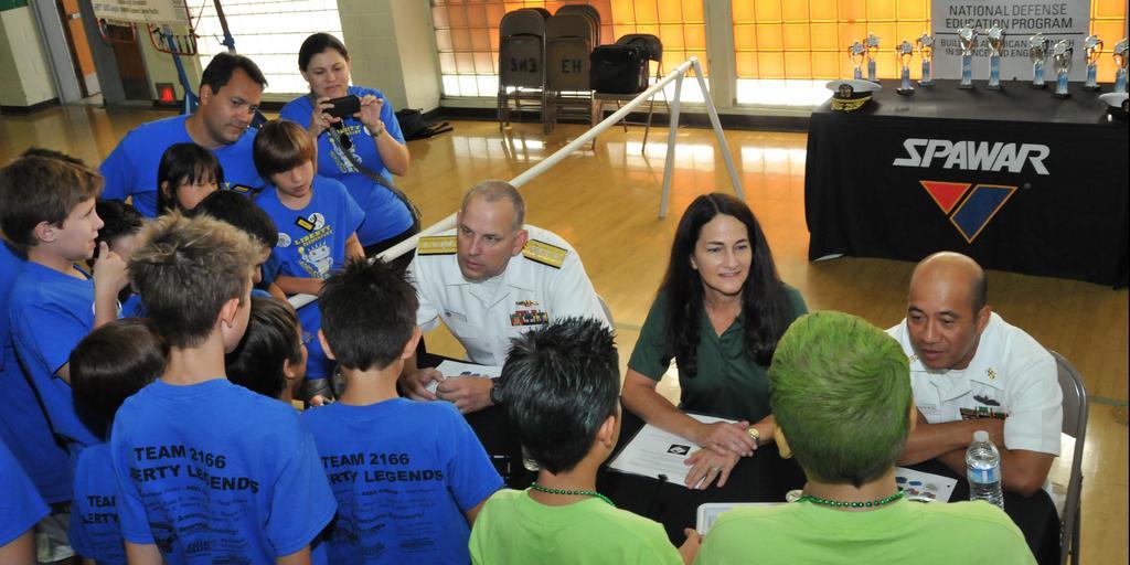 | Keywords: SPAWAR Sponsors Lego Robotics Tournament 121104-N-UN340-022.jpg en U S Navy Rear Adm Patrick H Brady left Commander Space and Naval Warfare Systems Command SPAWAR ; Ms Carmela Keeney Technical Director Space and Naval Warfare Systems Center Pacific SSC Pacific and SSC Pacific Command Master Chief Master Chief Logistics Specialist Diosdado Metra meet competitors prior to the start of the SPAWAR-sponsored For Inspiration and Recognition of Science and Technology FIRST LEGO league robotics qualifying tournament at Eastlake High School FIRST robotics competitions combine the excitement of sports with science and technology and create a unique opportunity for students to compete for scholarships while designing building and programming robots with professional engineers More that 60 SPAWAR volunteers assisted in the event As the Navy's Information Dominance systems command SPAWAR supports and strongly encourages students to pursue careers in the Science Technology Engineering and Mathematics STEM fields U S Navy photo by Rick Naystatt/Released 2012-11-04 Rick Naystatt https //www dvidshub net/image/776533 121104-N-UN340-022 2012-11-06 11 06 CHULA VISTA CA US PD-USGov-Military-Navy Space and Naval Warfare Systems Command Images from DoD uploaded by Fæ |