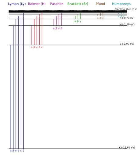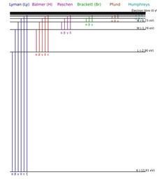 Keywords: Spectral lines of the hydrogen atom.svg Spectral lines of the hydrogen atom sorted by series Raies spectrales de l'atome d'hydrogène classées par série Spektrallinien des Wasserstoffatoms nach Serie geordnet Líneas espectrales del es hidrógeno clasificadas en series Made by myself 2007-02-05 Régis Lachaume public domain Hydrogen physics Spectral lines |