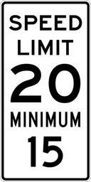 Keywords: Speed Limit 20 Minimum 15 sign.svg 600 mm by 1200 mm 24 in by 48 in Combined Speed Limit sign made to the specifications of the http //mutcd fhwa dot gov/SHSm/regulatory pdf 2004 edition of Standard Highway Signs sign R2-4a Uses the http //www triskele com/fonts/index html Roadgeek 2005 fonts United States law does not permit the copyrighting of typeface designs and the fonts are meant to be copies of a U S Government-produced work anyway The outside border has a width of 1 1 mm and a color of black so it shows up; in reality signs have no outside border own Ltljltlj User Ltljltlj/Template minimum R2-4 - Minimum Speed 2015 15 number 20 number |