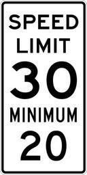Keywords: Speed Limit 30 Minimum 20 sign.svg 600 mm by 1200 mm 24 in by 48 in Combined Speed Limit sign made to the specifications of the http //mutcd fhwa dot gov/SHSm/regulatory pdf 2004 edition of Standard Highway Signs sign R2-4a Uses the http //www triskele com/fonts/index html Roadgeek 2005 fonts United States law does not permit the copyrighting of typeface designs and the fonts are meant to be copies of a U S Government-produced work anyway The outside border has a width of 1 1 mm and a color of black so it shows up; in reality signs have no outside border own Ltljltlj User Ltljltlj/Template minimum R2-4 - Minimum Speed 3020 20 number 30 number |
