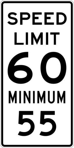 Keywords: Speed Limit 60 Minimum 55 sign.svg 600 mm by 1200 mm 24 in by 48 in Combined Speed Limit sign made to the specifications of the http //mutcd fhwa dot gov/SHSm/regulatory pdf 2004 edition of Standard Highway Signs sign R2-4a Uses the http //www triskele com/fonts/index html Roadgeek 2005 fonts United States law does not permit the copyrighting of typeface designs and the fonts are meant to be copies of a U S Government-produced work anyway The outside border has a width of 1 1 mm and a color of black so it shows up; in reality signs have no outside border own Ltljltlj User Ltljltlj/Template minimum R2-4 - Minimum Speed 6055 60 number 55 number |