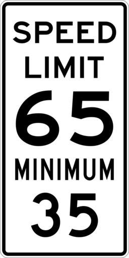 Keywords: Speed Limit 65 Minimum 35 sign.svg 600 mm by 1200 mm 24 in by 48 in Combined Speed Limit sign made to the specifications of the http //mutcd fhwa dot gov/SHSm/regulatory pdf 2004 edition of Standard Highway Signs sign R2-4a Uses the http //www triskele com/fonts/index html Roadgeek 2005 fonts United States law does not permit the copyrighting of typeface designs and the fonts are meant to be copies of a U S Government-produced work anyway The outside border has a width of 1 1 mm and a color of black so it shows up; in reality signs have no outside border own Ltljltlj User Ltljltlj/Template minimum R2-4 - Minimum Speed 6535 65 number 35 number |