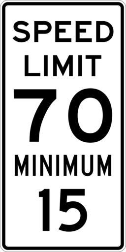 | Keywords: Speed Limit 70 Minimum 15 sign.svg 600 mm by 1200 mm 24 in by 48 in Combined Speed Limit sign made to the specifications of the http //mutcd fhwa dot gov/SHSm/regulatory pdf 2004 edition of Standard Highway Signs sign R2-4a Uses the http //www triskele com/fonts/index html Roadgeek 2005 fonts United States law does not permit the copyrighting of typeface designs and the fonts are meant to be copies of a U S Government-produced work anyway The outside border has a width of 1 1 mm and a color of black so it shows up; in reality signs have no outside border own Ltljltlj User Ltljltlj/Template minimum R2-4 - Minimum Speed 7015 70 number 15 number |