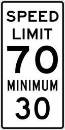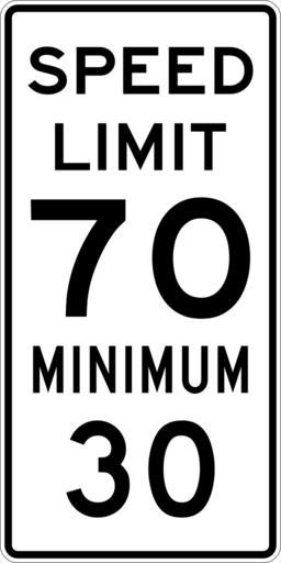 Keywords: Speed Limit 70 Minimum 30 sign.svg 600 mm by 1200 mm 24 in by 48 in Combined Speed Limit sign made to the specifications of the http //mutcd fhwa dot gov/SHSm/regulatory pdf 2004 edition of Standard Highway Signs sign R2-4a Uses the http //www triskele com/fonts/index html Roadgeek 2005 fonts United States law does not permit the copyrighting of typeface designs and the fonts are meant to be copies of a U S Government-produced work anyway The outside border has a width of 1 1 mm and a color of black so it shows up; in reality signs have no outside border own Ltljltlj User Ltljltlj/Template minimum R2-4 - Minimum Speed 7030 30 number 70 number |