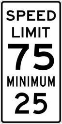 Keywords: Speed Limit 75 Minimum 25 sign.svg 600 mm by 1200 mm 24 in by 48 in Combined Speed Limit sign made to the specifications of the http //mutcd fhwa dot gov/SHSm/regulatory pdf 2004 edition of Standard Highway Signs sign R2-4a Uses the http //www triskele com/fonts/index html Roadgeek 2005 fonts United States law does not permit the copyrighting of typeface designs and the fonts are meant to be copies of a U S Government-produced work anyway The outside border has a width of 1 1 mm and a color of black so it shows up; in reality signs have no outside border own Ltljltlj User Ltljltlj/Template minimum R2-4 - Minimum Speed 7525 75 number 25 number |