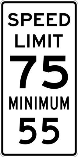 Keywords: Speed Limit 75 Minimum 55 sign.svg 600 mm by 1200 mm 24 in by 48 in Combined Speed Limit sign made to the specifications of the http //mutcd fhwa dot gov/SHSm/regulatory pdf 2004 edition of Standard Highway Signs sign R2-4a Uses the http //www triskele com/fonts/index html Roadgeek 2005 fonts United States law does not permit the copyrighting of typeface designs and the fonts are meant to be copies of a U S Government-produced work anyway The outside border has a width of 1 1 mm and a color of black so it shows up; in reality signs have no outside border own Ltljltlj User Ltljltlj/Template minimum R2-4 - Minimum Speed 7555 75 number 55 number |