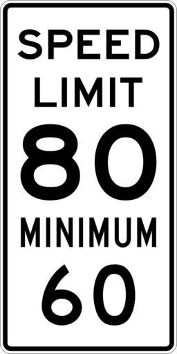 Keywords: Speed Limit 80 Minimum 60 sign.svg 600 mm by 1200 mm 24 in by 48 in Combined Speed Limit sign made to the specifications of the http //mutcd fhwa dot gov/SHSm/regulatory pdf 2004 edition of Standard Highway Signs sign R2-4a Uses the http //www triskele com/fonts/index html Roadgeek 2005 fonts United States law does not permit the copyrighting of typeface designs and the fonts are meant to be copies of a U S Government-produced work anyway The outside border has a width of 1 1 mm and a color of black so it shows up; in reality signs have no outside border own Ltljltlj User Ltljltlj/Template minimum R2-4 - Minimum Speed 8060 60 number 80 number |
