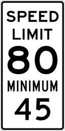 Keywords: Speed Limit 80 Minimum 45 sign.svg 600 mm by 1200 mm 24 in by 48 in Combined Speed Limit sign made to the specifications of the http //mutcd fhwa dot gov/SHSm/regulatory pdf 2004 edition of Standard Highway Signs sign R2-4a Uses the http //www triskele com/fonts/index html Roadgeek 2005 fonts United States law does not permit the copyrighting of typeface designs and the fonts are meant to be copies of a U S Government-produced work anyway The outside border has a width of 1 1 mm and a color of black so it shows up; in reality signs have no outside border own Ltljltlj User Ltljltlj/Template minimum R2-4 - Minimum Speed 8045 45 number 80 number |