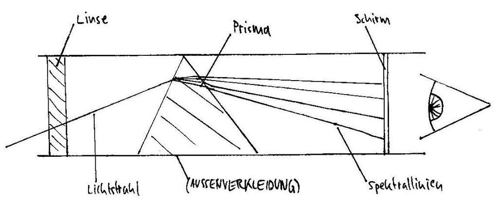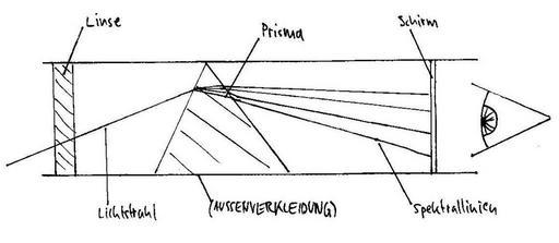 Keywords: Spetrometer Aufbau.jpg Prinzipieller Aufbau eines Spektrometers Principle of a spectrometer Own date Bonsssen Prism spectroscopes