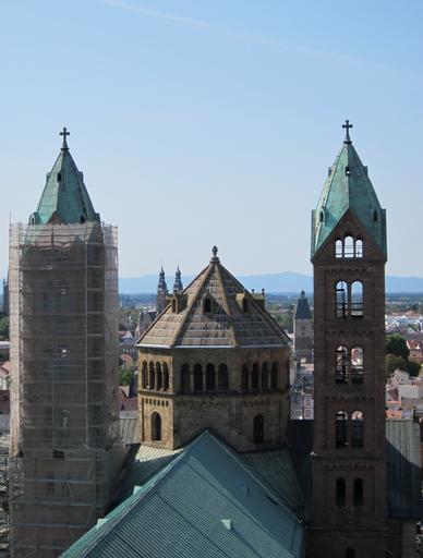 Keywords: speyer cathedral exterior architecture church europe germany religious building view historic famous spires steeples unesco