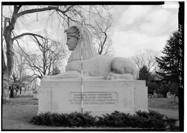 Keywords: Sphinx by Martin Milmore - 080177pv.jpg A monument to the causes and victory of the Civil War the inscription reads 'American Union Preserved African slavery destroyed by the uprising of a great people by the blood of fallen heroes' An interesting and unique piece of sculpture Historic American Buildings Survey HABS Library of Congress Prints and Photograph Division Washington D C 20540 USA Survey number HABS MA-1216-B http //hdl loc gov/loc pnp/hhh ma1378 December 12 1987 1967 per HABS record Jack E Boucher Public domain - Origianl work of the US Federal Government Sphinx by Martin Milmore PD-USGov |