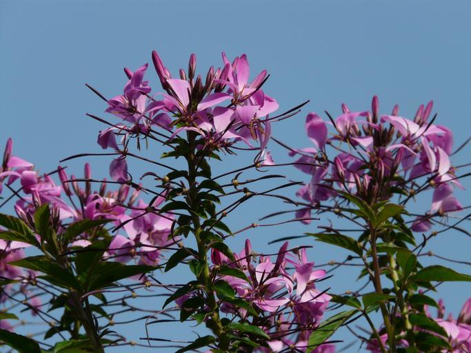 Keywords: spider flower spider plant flower blossom bloom pink violet red purple cleome spinosa plant cleomaceae stamens standing out balcony plant summer plant