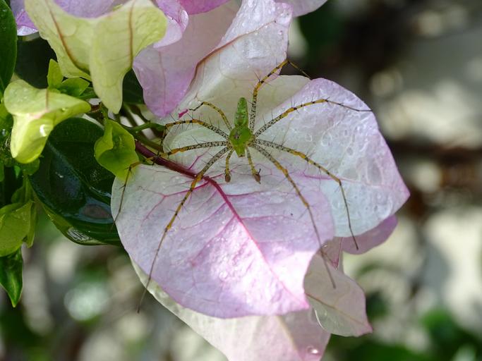 Keywords: spider nature insects bugs arachnid animals animal natural green flower buganvilia fauna field arthropod environment ecosystem predator stalking petal plant open air