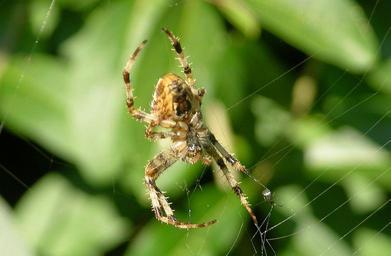 | Keywords: Spider-phobia.jpg de Spinne ca 1 cm großer Körper in ihrem Netz Ein Windhauch bewegte eines der Blätter und brachte die Unordnung rechts unten Gerne würde ich hier mehr erfahren über einen solchen Unfall Die Spinne scheint in Panik - ist ein Bein abgerissen en Spider in the web approx 10 mm - 0 35 inch body Disturbed by the wind moving a leaf inside the web I would like to know more about spiders and their art to manufacture the web although I learnt from Wikipedia Does this spider feels sort of panic Did it partially lose a leg www ammersee-region de Karin Schmitt www ammersee-region de 2009 This work is from today - August 9th 2009 Never published before Made in Raisting Bavaria www ammersee-region de/raisting html Unidentified Araneae |