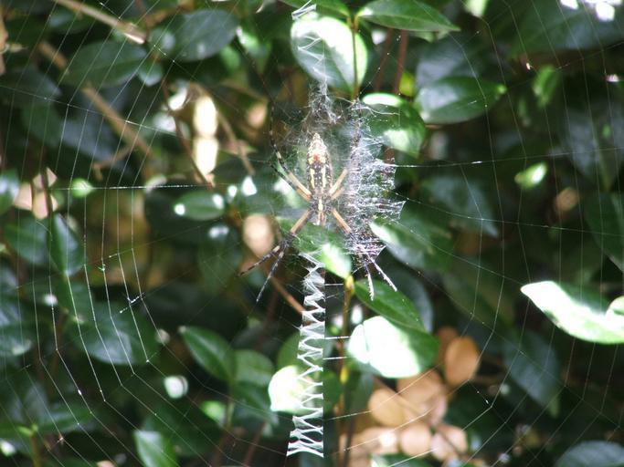 Keywords: spider spiderweb web cobweb arachnid wildlife bug bright small thorax wild entomology outdoor life nature scary insect trap