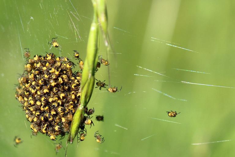 Keywords: spin arachnids close small spider network nest small insect macro