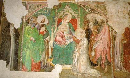 Keywords: Spinello aretino, matrimoni mistico di santa caterina d'alessandria, 1390 circa.jpg Spinello aretino matrimoni mistico di santa caterina d'alessandria 1390 circa Giovanni Matteo Guidetti La Cappella del Cardinale del Portogallo a San Miniato al Monte in AA VV Cappelle del Rinascimento a Firenze Editrice Giusti Firenze 1998 ~ 1390 see filename or category PD-Art Marriage of Saint Catherine of Alexandria by Spinello Aretino |