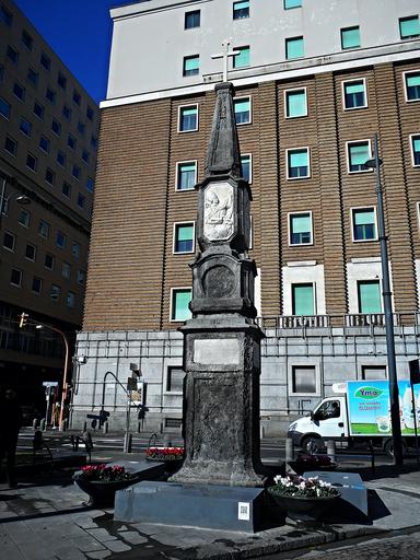 | Keywords: spire guglia naples italy outdoor FRESCA DI RESTAURO È la guglia presso la chiesa di Santa Maria di Portosalvo tra Via Marina e Via De Gasperi a Napoli. Da anni imbracata e addirittura in pericolo statico, finalmente ricompare dopo un accurato restauro, in un'area pedonalizzata e arricchita di fiori. In tale occasione, è stato scoperto il livello originario della guglia, di circa mezzo metro al di sotto dell'attuale. Il che ha richiesto la collocazione dei blocchi parallelepipedi e delle fioriere visibili in foto. La guglia fu eretta dai filoborbonici a seguito dell'ingresso in città delle armate del cardinale Ruffo, che misero in fuga i francesi repubblicani. Poiché l'evento cadde il 13 giugno 1799, festività di Sant'Antonio, a questo santo fu attribuito il "merito" della sconfitta giacobina. Da ciò la rivalità tra San Gennaro e Sant'Antonio, oggetto di un gustoso capitolo del libro "Il Corricolo" di Alexandre Dumas Père. Perciò, accanto al patrono di Napoli, su questa guglia compare il santo portoghese-padovano, in una sorta di derby religioso. FRESCA DI RESTAURO È la guglia presso la chiesa di Santa Maria di Portosalvo tra Via Marina e Via De Gasperi a Napoli. Da anni imbracata e addirittura in pericolo statico, finalmente ricompare dopo un accurato restauro, in un'area pedonalizzata e arricchita di fiori. In tale occasione, è stato scoperto il livello originario della guglia, di circa mezzo metro al di sotto dell'attuale. Il che ha richiesto la collocazione dei blocchi parallelepipedi e delle fioriere visibili in foto. La guglia fu eretta dai filoborbonici a seguito dell'ingresso in città delle armate del cardinale Ruffo, che misero in fuga i francesi repubblicani. Poiché l'evento cadde il 13 giugno 1799, festività di Sant'Antonio, a questo santo fu attribuito il "merito" della sconfitta giacobina. Da ciò la rivalità tra San Gennaro e Sant'Antonio, oggetto di un gustoso capitolo del libro "Il Corricolo" di Alexandre Dumas Père. Perciò, accanto al patrono di Napoli, su questa guglia compare il santo portoghese-padovano, in una sorta di derby religioso. |