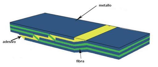 Keywords: Splice1.jpg esempio di un giunto FML fiber metal laminate splice example of a FML joint Own 2007-08-08 Soblue Joints engineering Metals