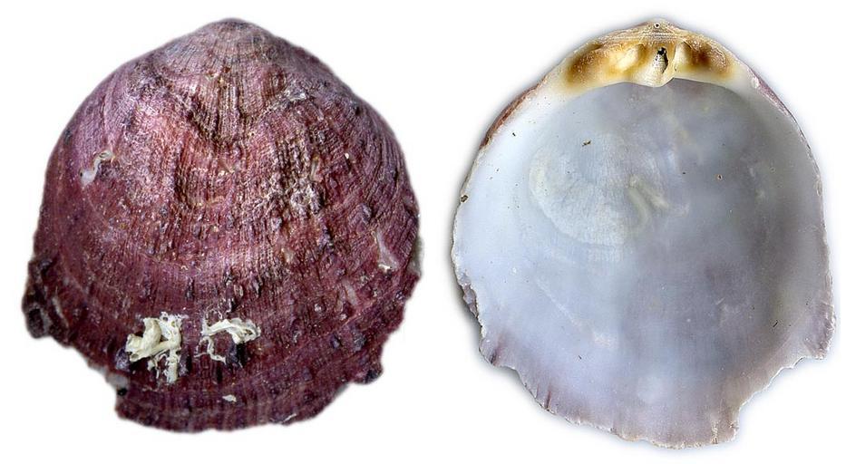 | Keywords: Spondylus gaederopus upper valve.jpg Spondylus gaederopus Mediterranean Sea Spain Costa bRava Playa d'Aro Cap Roig rocky shore September 2004 shown is the upper valve from outside with quite short thornes and the inside with the hinge-line self-made scanner 2007-09-24 Weitbrecht Spondylus gaederopus |