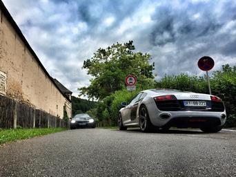 Keywords: sports car road clouds auto sport super sports car background summer landscape pkw automotive vehicles nature technology dare summer day motorsport speed sun bmw i8 r8 audi