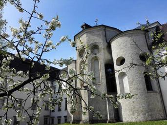 Keywords: spring bloom cherry blossom church monastery kremsmünster enjoy reflection park flower blossom bloom nature signs of spring flowers trees