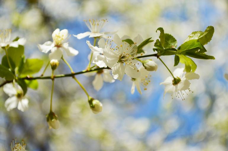 Keywords: spring blue sky sunshine white green lights flower logany friends bloom