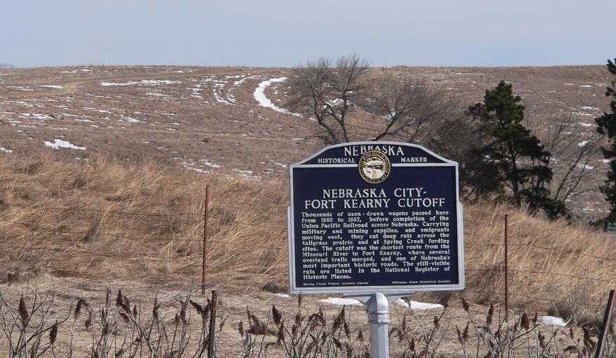 | Keywords: Spring Creek Prairie wagon ruts marker.JPG en Historical marker on SW 100th Street in rural Lancaster County Nebraska near the entrance of Spring Creek Prairie Audubon Center The snow-filled wagon ruts referred to by the marker can be seen arcing down the slope in the background left of the bare tree behind the marker 2012-02-21 own Ammodramus cc-zero Uploaded with UploadWizard Pictures by Ammodramus Taken with Panasonic Lumix DMC-FZ20 Spring Creek Prairie wagon ruts Lancaster County Nebraska Historical markers in Nebraska - Migration routes |