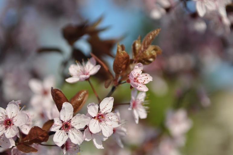 Keywords: spring flowers garden nature pink spring flowers branch light sun sweetness