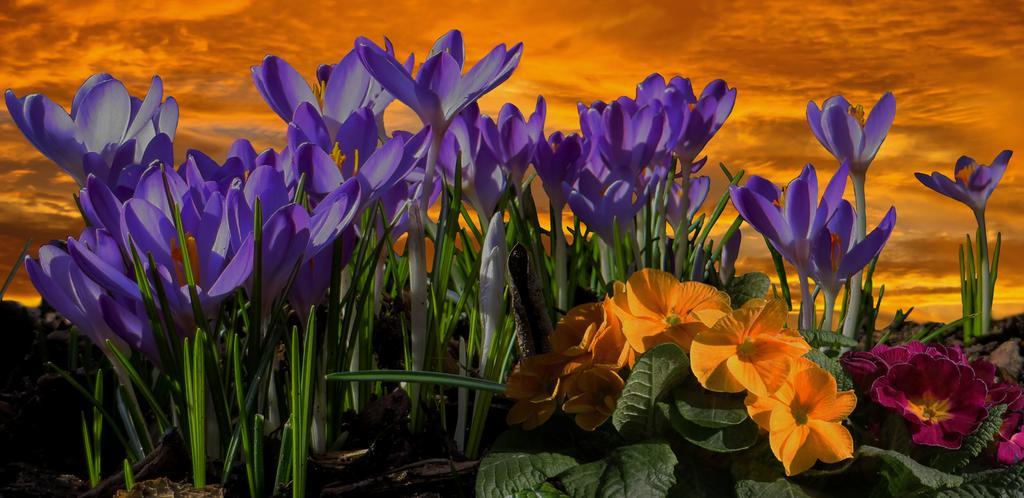 Keywords: spring frühlingsanfang spring awakening crocus close spring flowers blossom bloom mood sunset