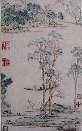 | Keywords: Spring in Kiangnan.jpg Spring in Kiangnan 1547 by Wen Cheng-Ming 1470-1559 lower half detail the entire size 106x30cm hanging scroll in ink and light colours on paper National Palace Museum Taipei BUNJINNGA SUIHEN 1547 ReijiYamashina Institution National Palace Museum PD-old-100 Creator Wen Cheng-Ming PD-China PD-old-100 Wen Zhengming Shan shui paintings in the National Palace Museum Paintings of mountains Paintings of trees Paintings of rivers Paintings of the Ming Dynasty Karst topography in China Ink and wash paintings in China Landscape paintings of China Scrolls of China Chinese literati paintings Chinese silk Ancient Chinese art Art of China Art in China Artists from China Collections of art in China Art from Asia 1547 paintings Boats in China |