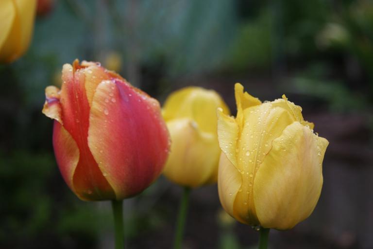 Keywords: spring public record flora rain raindrop tulip tulips flowers sun leaves downpour rainstorm wet shiver branch nature