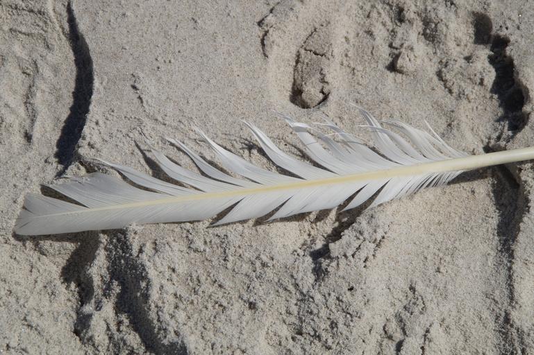 Keywords: spring seagull bird feather seagull feather lost beach sand sand beach fund