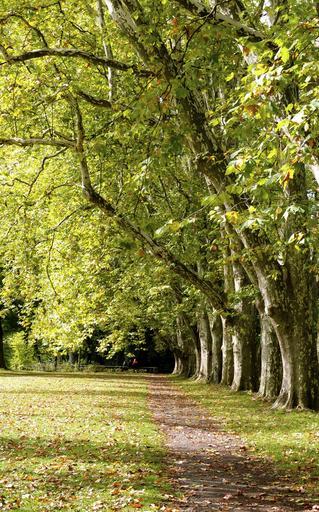 Keywords: spring summer park trees away meadow green grass leaves nature plane trees