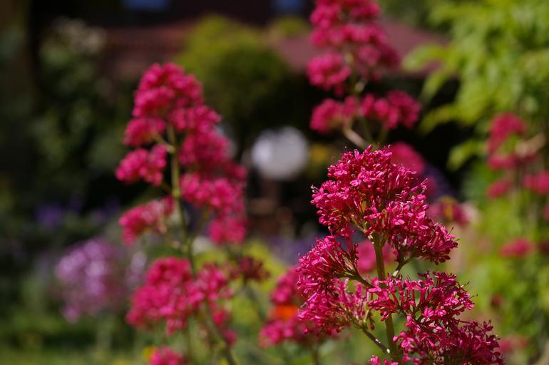Keywords: spur flower red spur flower beautiful flower garden blossom bloom red pink bloom nature plant filigree color flower bed summer flor beautiful flower bed garden design flora decoration petals background image