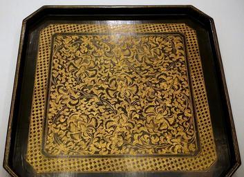 View Original: | Square tray (zen) with design of peony scrolls, Ryukyu Islands, 16th century AD, green lacquer with chinkin in gold on wood - Ethnological Museum, Berlin - DSC02084.JPG (4837x3515) | |||