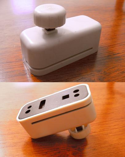 Keywords: Squareholepunch.jpg en Square hole punch used for 5 1/4 inch floppy disks Diskettenlocher für 5¼-Zoll Disketten own Standardissue 2008-01-06 Floppy disk punch Hole punchers